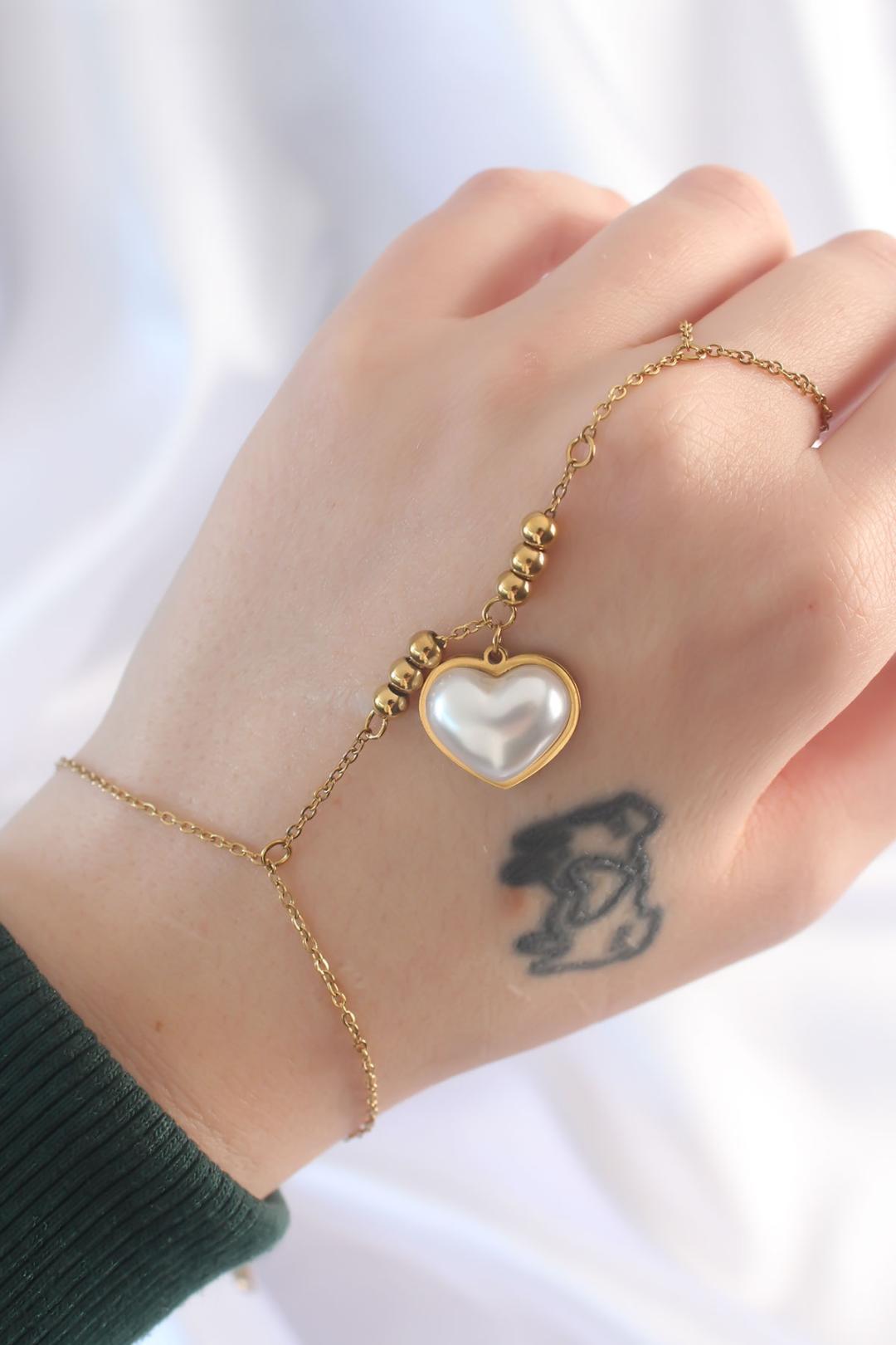 Altın renginin sıcak parıltısını beyaz bubble kalp detayıyla birleştiren bu zarif şahmeran, 316L çelik yapısı sayesinde kararma yapmaz, suya dayanıklıdır ve uzun ömürlüdür. Hem romantik hem modern havasıyla el ve bilek üzerinde dikkat çeken bir ışıltı sunar.