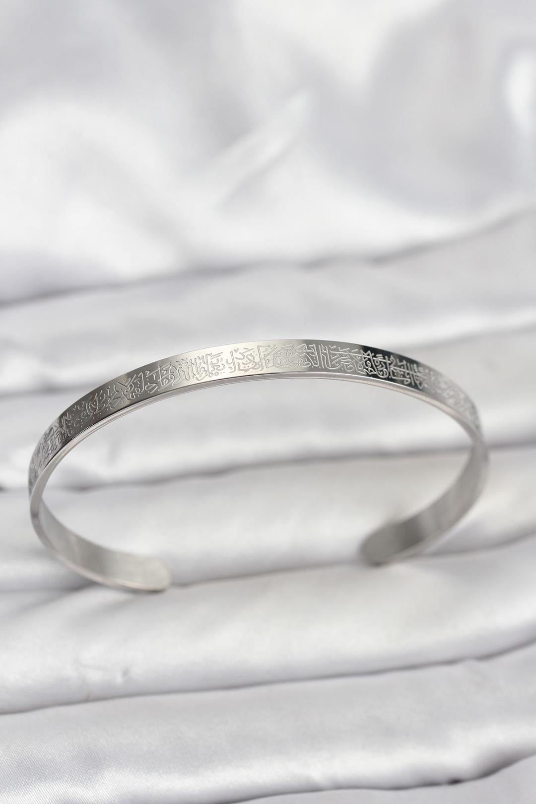 316L Çelik Gümüş Renk Ayetel Kürsi Yazılı Bileklik
