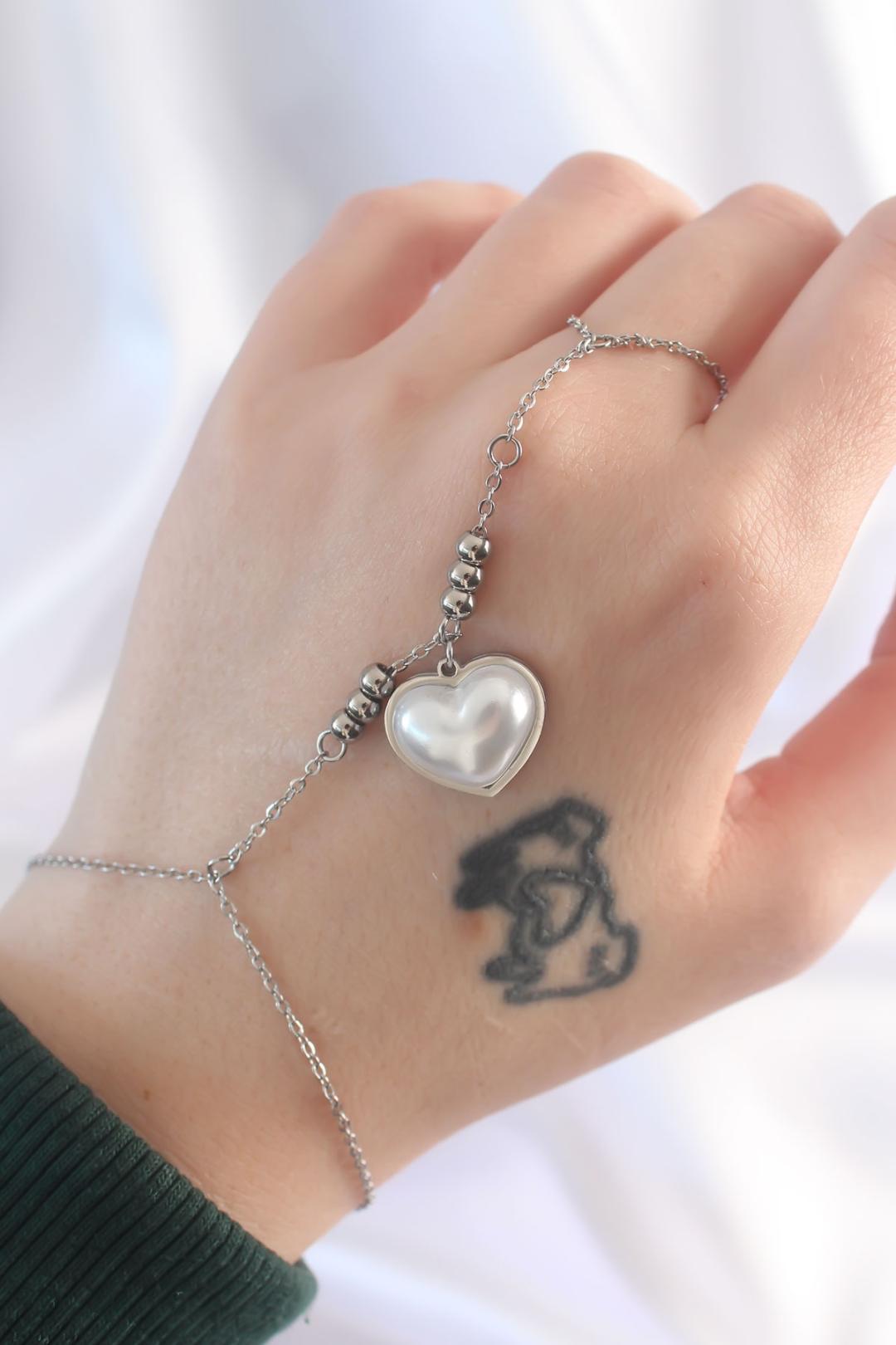 Modern “bubble” kalp detayıyla öne çıkan bu özel şahmeran, 316L çelik yapısı sayesinde kararma yapmaz, suya ve günlük kullanıma dayanıklıdır. Gümüş rengin sade ışıltısı, beyaz detaylarla birleşerek hem romantik hem de modern bir görünüm sunar.