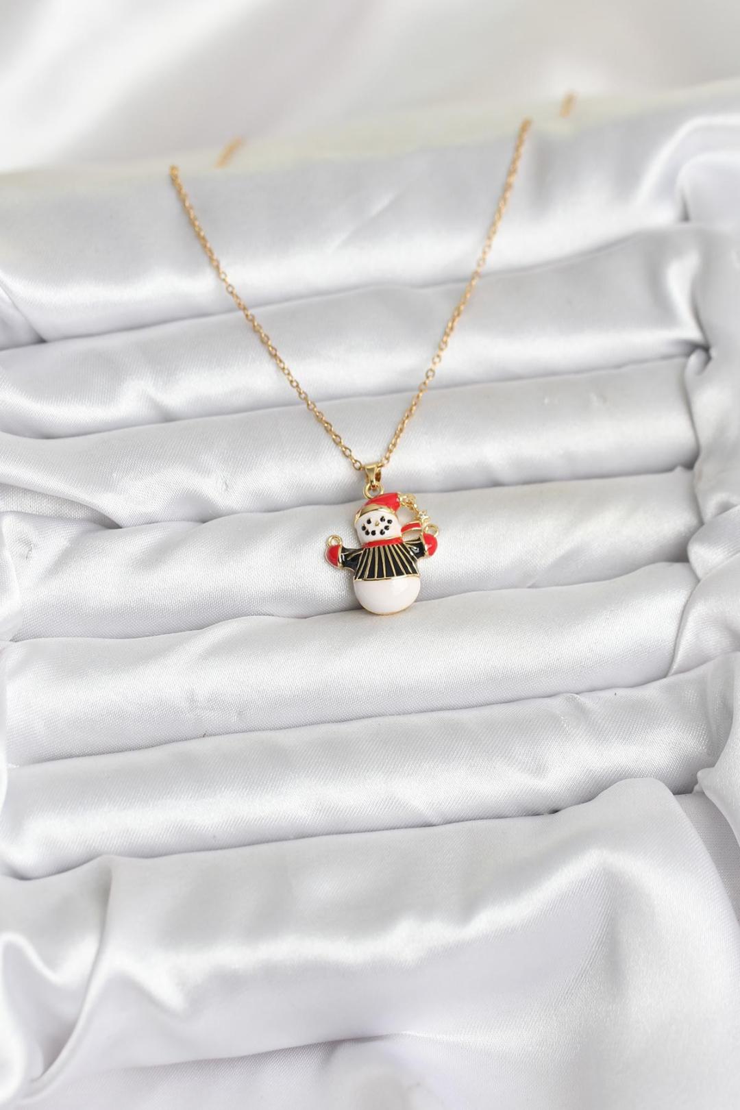 316L Çelik Zincir Gold Renk Kardan Adam Figürlü Yılbaşı Temalı Kadın Kolye