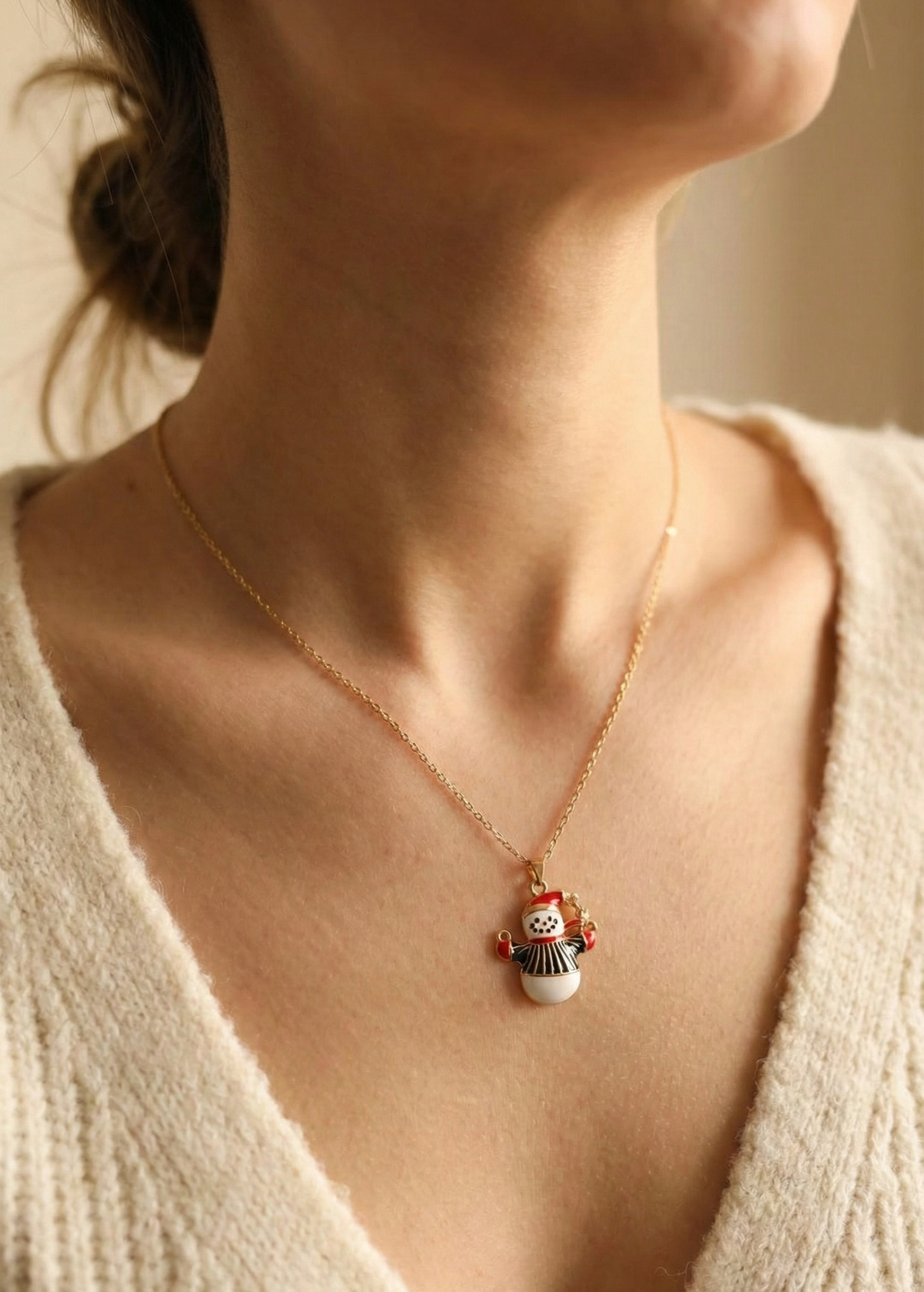 316L Çelik Zincir Gold Renk Kardan Adam Figürlü Yılbaşı Temalı Kadın Kolye ❄️✨