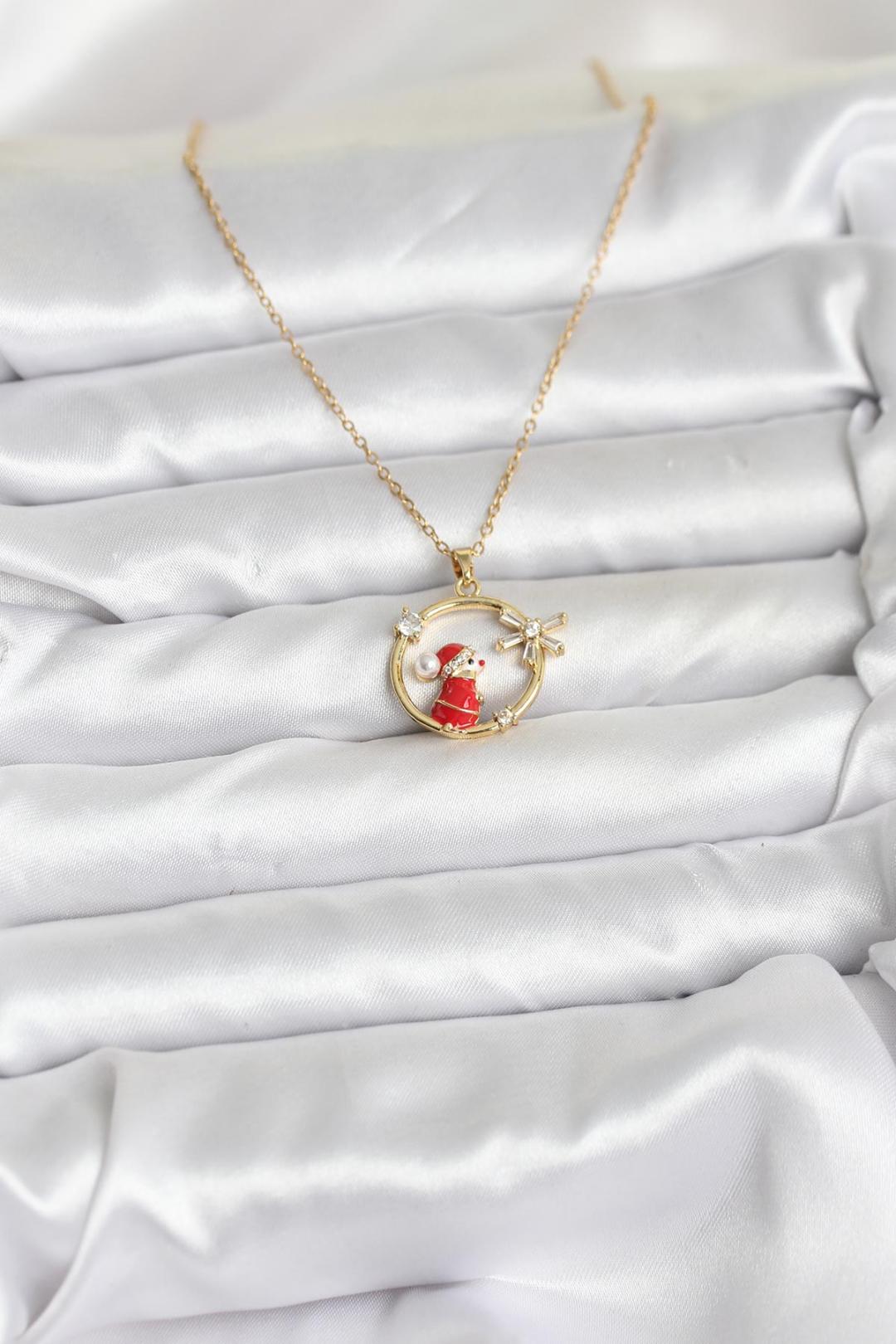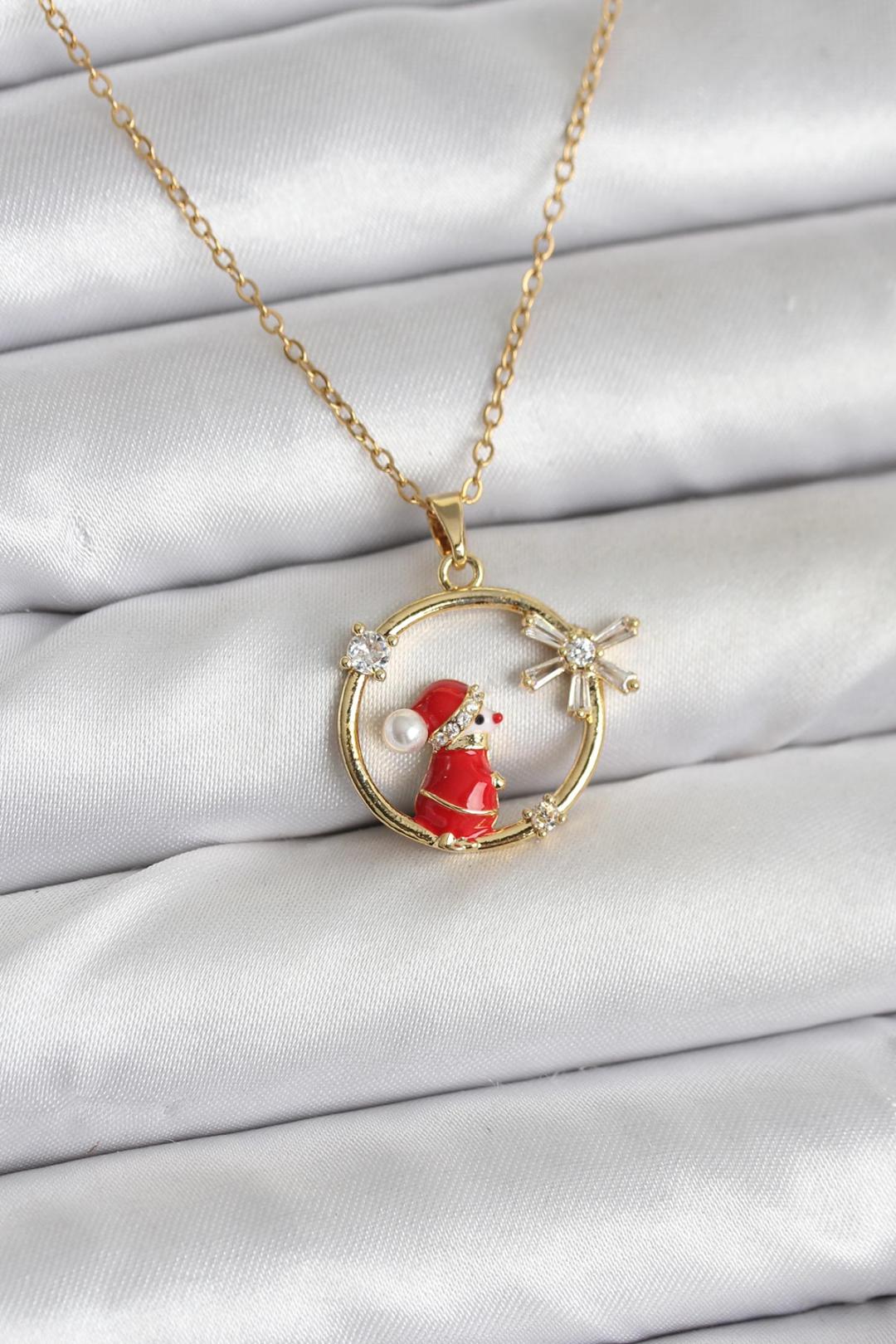 316L Çelik Zincir Gold Zirkon Taşlı Yılbaşı Temalı Kadın Kolye ✨🎄