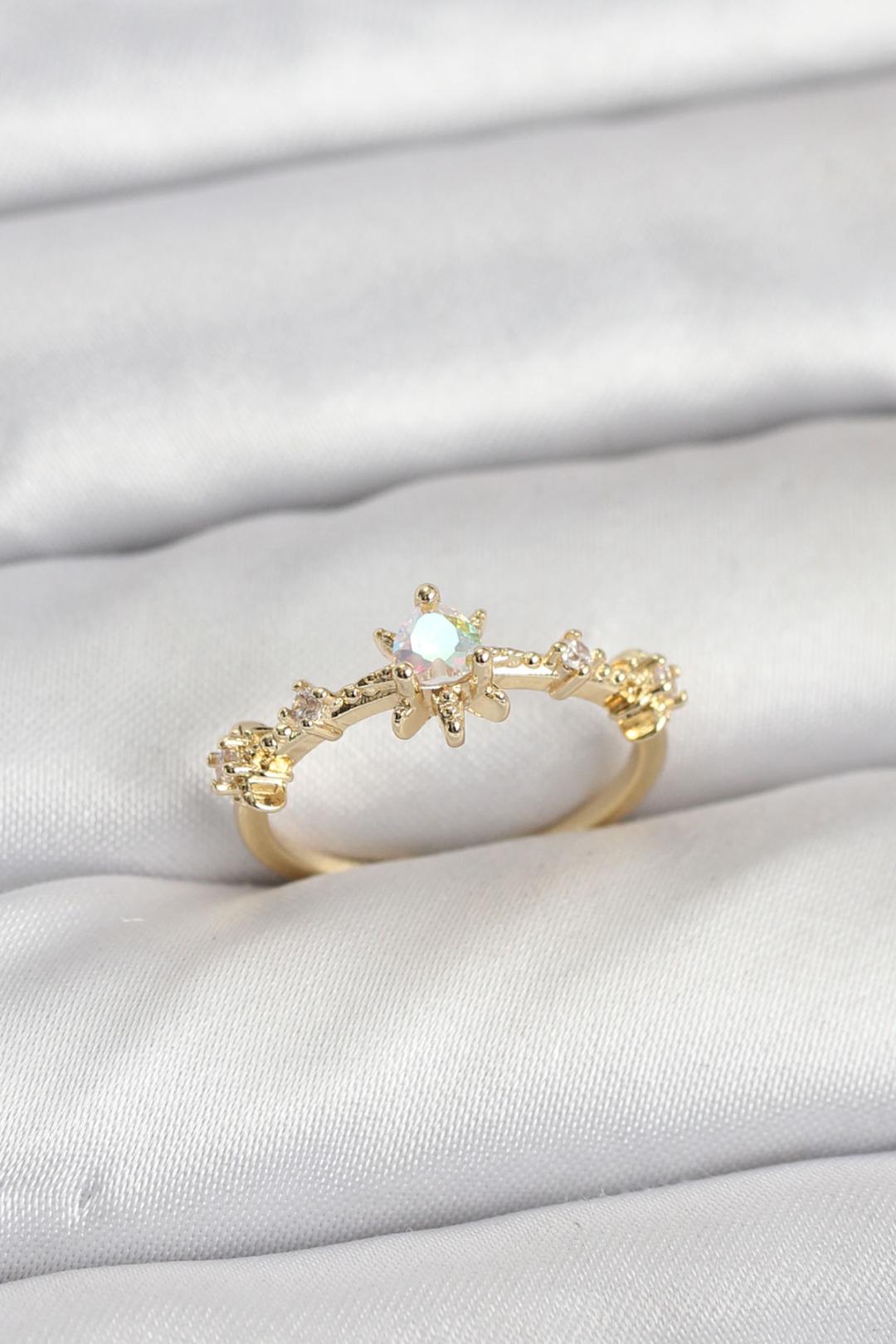 Gold Renk Pirinç Yıldız Model Kadın Yüzük – Işıltılı ve Zarif Dokunuş