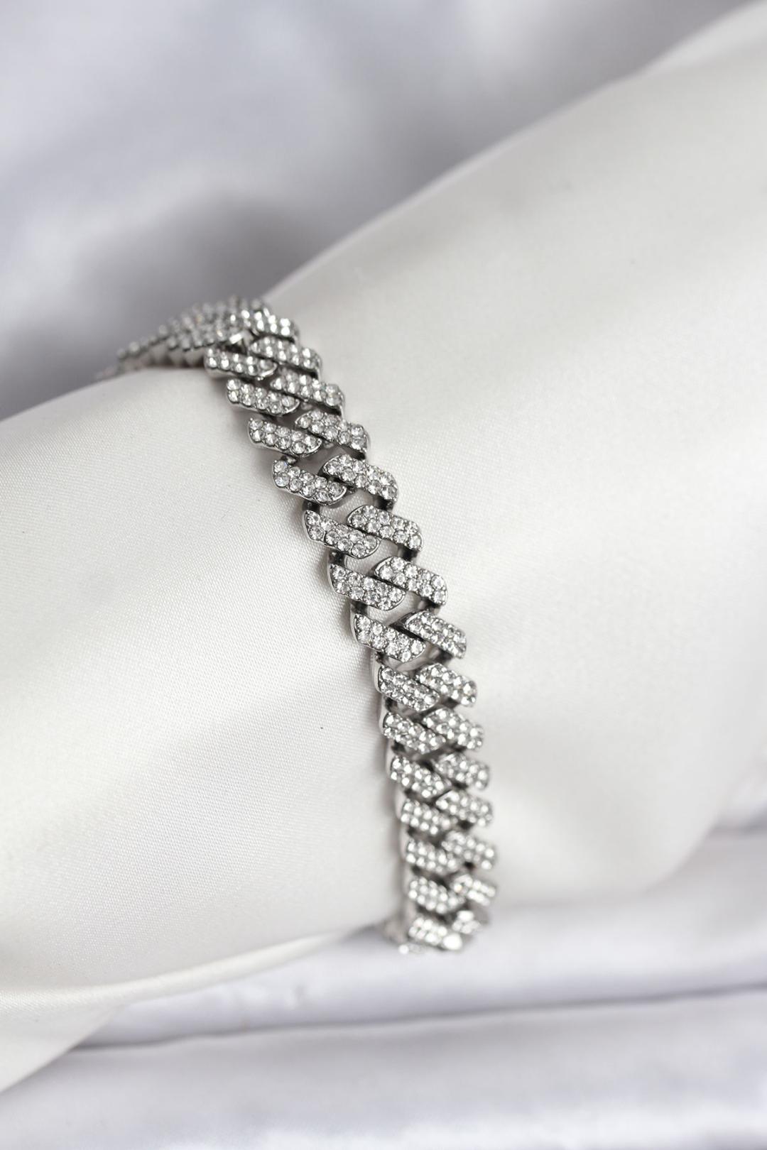 Gümüş Renk Pirinç Cuba Chain Gurmet Bileklik