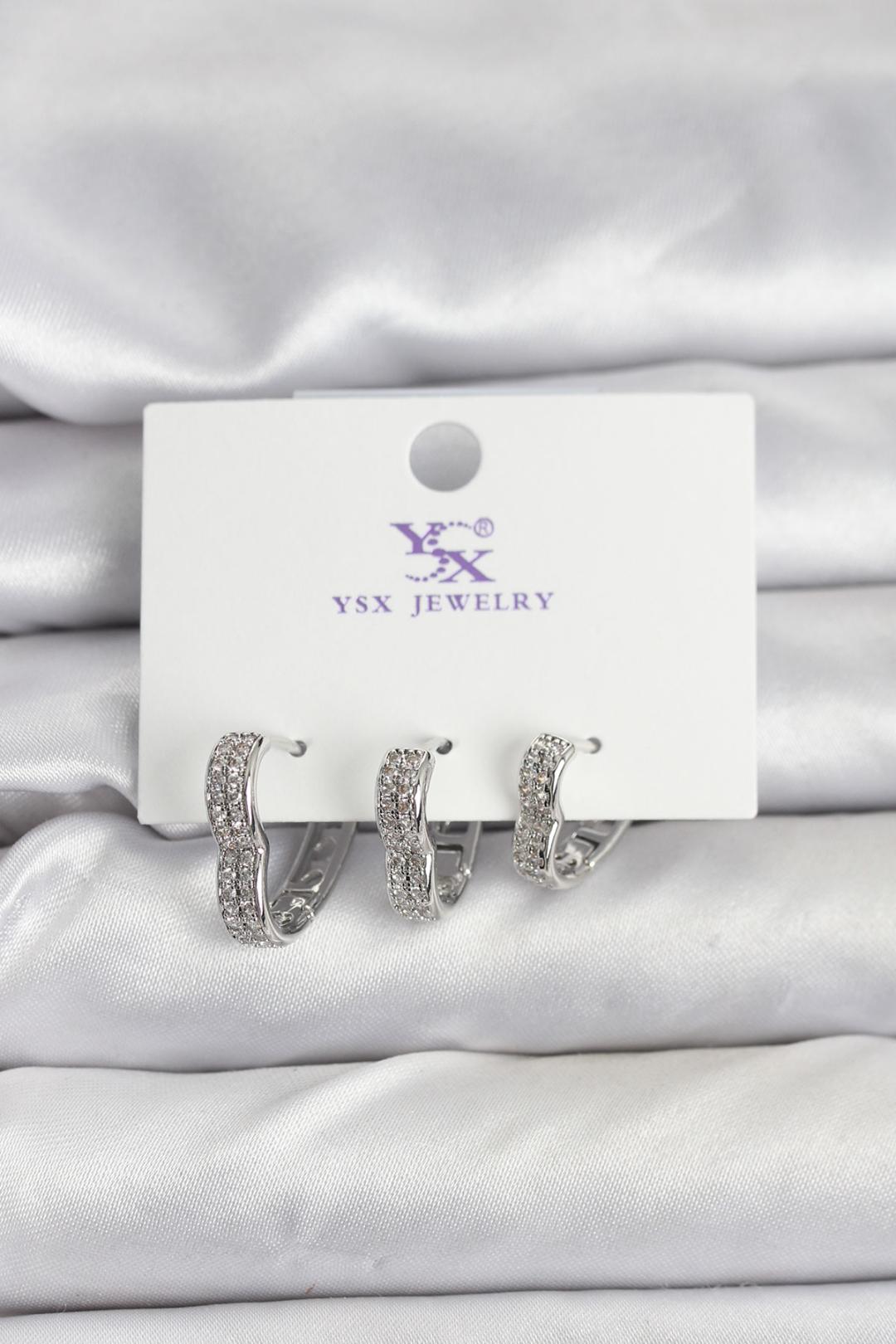 Gümüş Renk Pirinç Zirkon Taşlı Kalpli Kadın Küpe