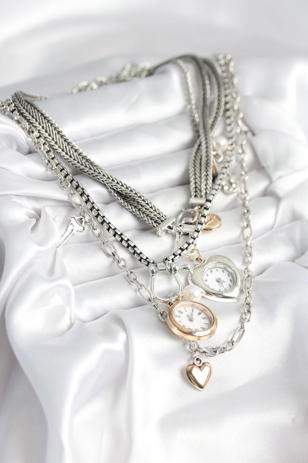 Otantik Gümüş Renk Kadın Kolye Kombini