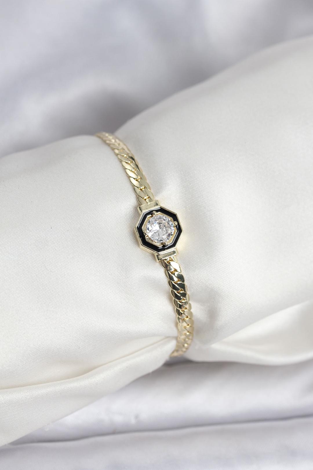 Pirinç Gold Renk Zirkon Taşlı Kadın Bileklik ✨