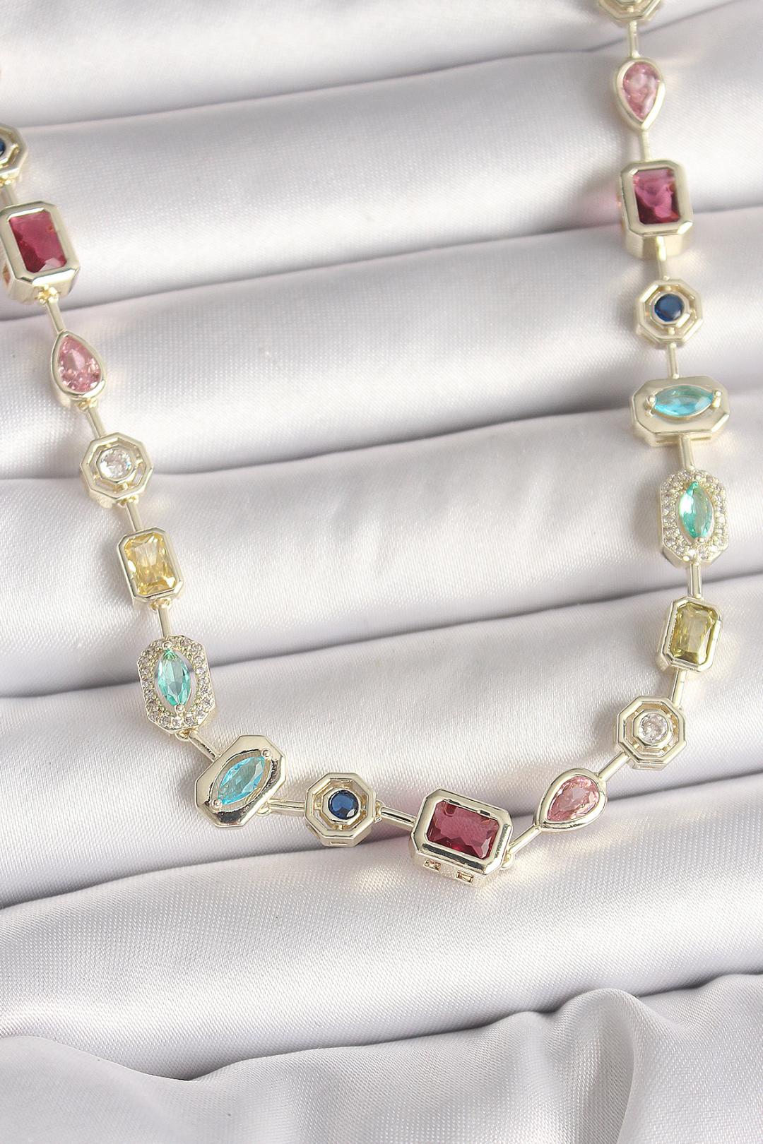 Pirinç Gold Renk Zirkon Taşlı VIP Seri Kadın Kolye