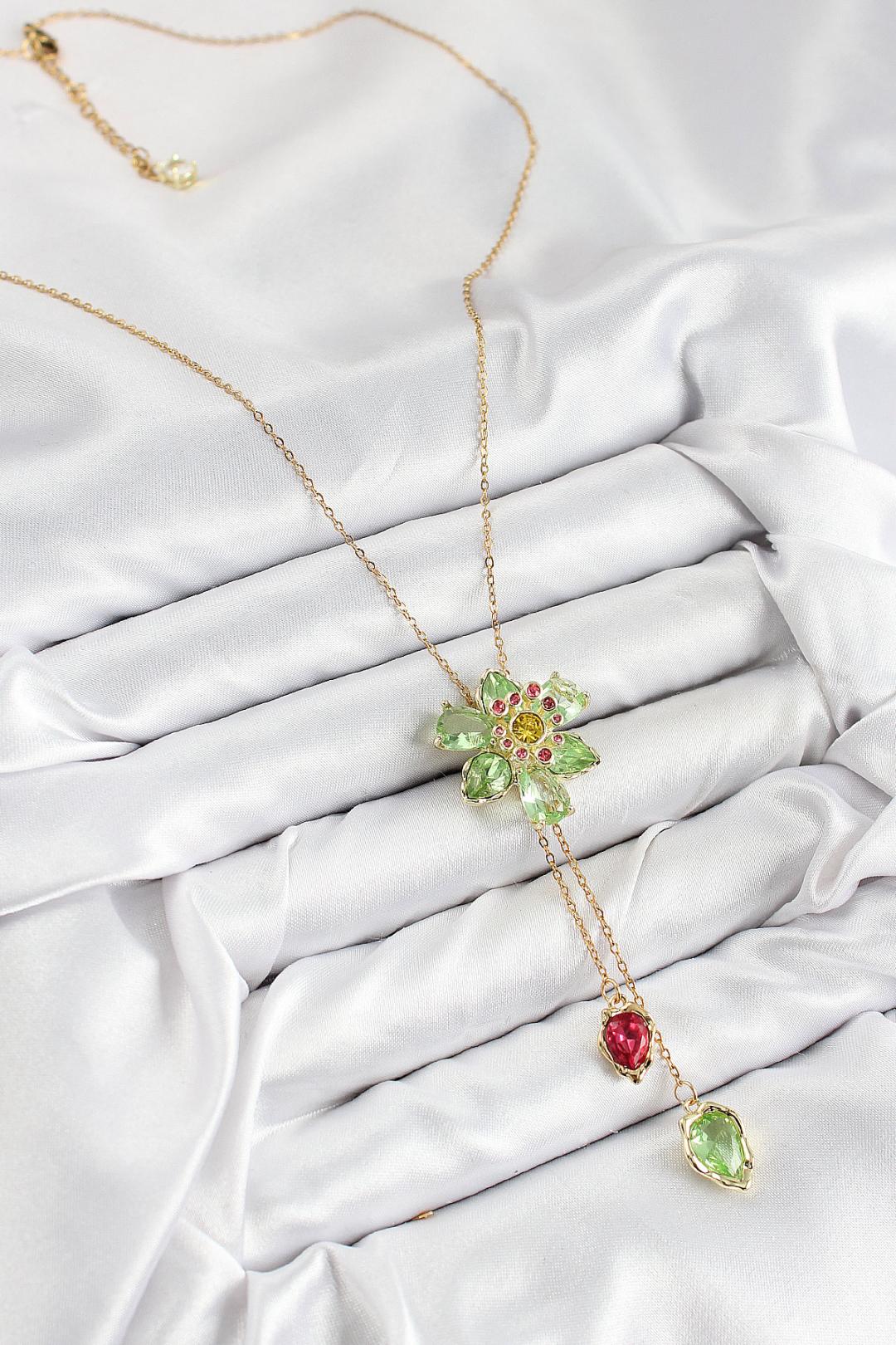 VIP Pirinç Zirkon Taşlı Çiçek Model Gold Renk Asansörlü Kadın Kolye